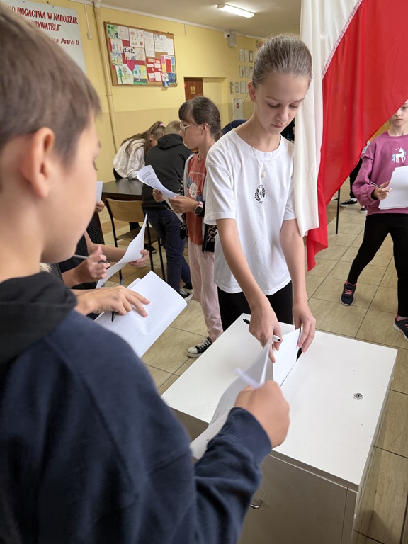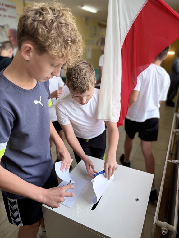 W dniu 19.09.2025 odbyły się w naszej szkole wybory do Rady Samorządu Uczniowskiego na rok szkolny 2025/2026. Nasi uczniowie mogli wybrać jednego spośród 12 kandydatów zgłoszonych przez przewodniczących klas 4-8 w porozumieniu z wychowawcami. Nad przygotowaniem i przeprowadzeniem wyborów czuwała Komisja w składzie: Nadia Tałaj, Milena Suchanowska, Lena Stobiecka, Aleksander Zgoda z Przewodniczącym Szymonem Modlińskim na czele.