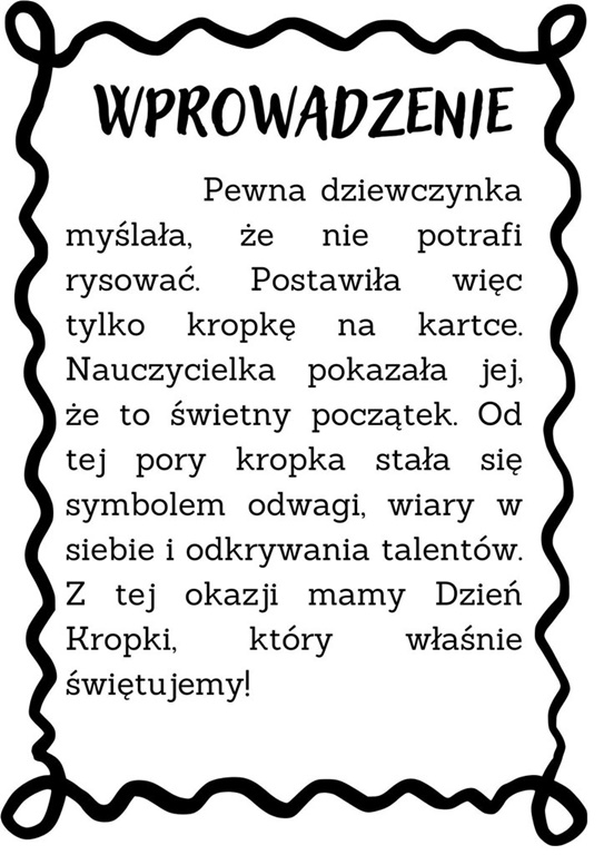 Słynna opowiastka i filmik „The Dot”, to zobrazowanie, jak ważne w edukacji są wsparcie i zachęta, które mogą być przyczynkiem do odkrycia własnych pomysłów, odkrycia drzemiącego w dziecku potencjału.