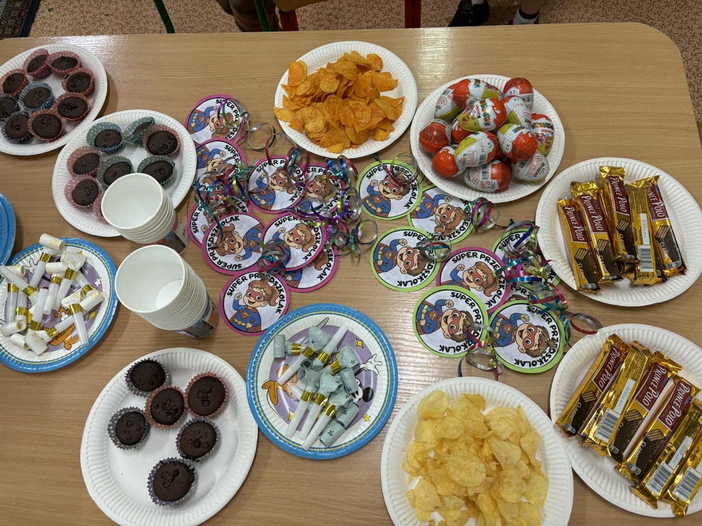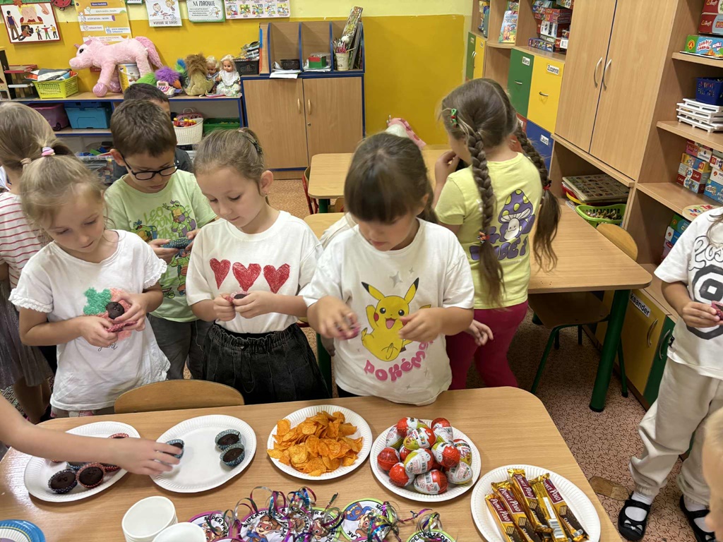 Z tej okazji zorganizowane zostały zabawy ruchowe i taneczne. Było malowanie farbami, zagadki i konkursy. Dzieci otrzymały drobne upominki i słodkie niespodzianki. Ten beztroski dzień, dostarczył dzieciom wspaniałych wrażeń, radości z bycia przedszkolakiem.