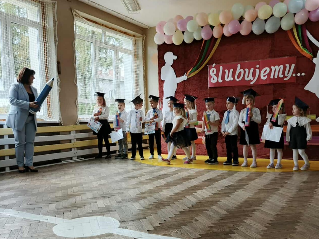Po śpiewająco zdanym egzaminie pani dyrektor Lidia Taranek przystąpiła do uroczystego pasowania. Dzieci otrzymały pamiątkowe dyplomy i upominki.