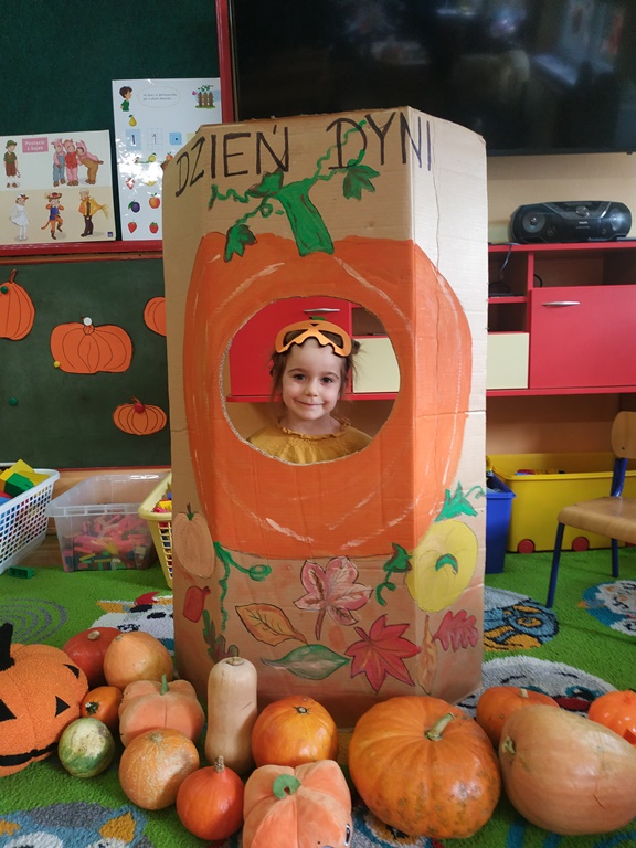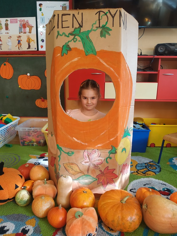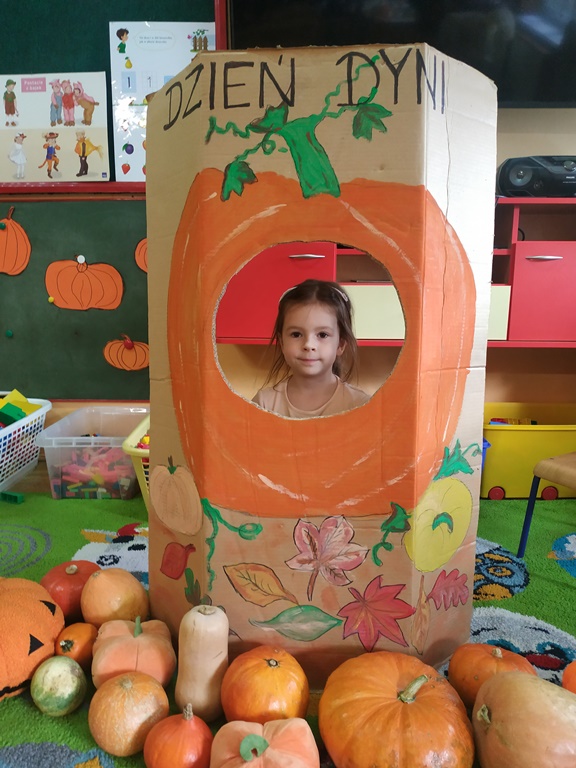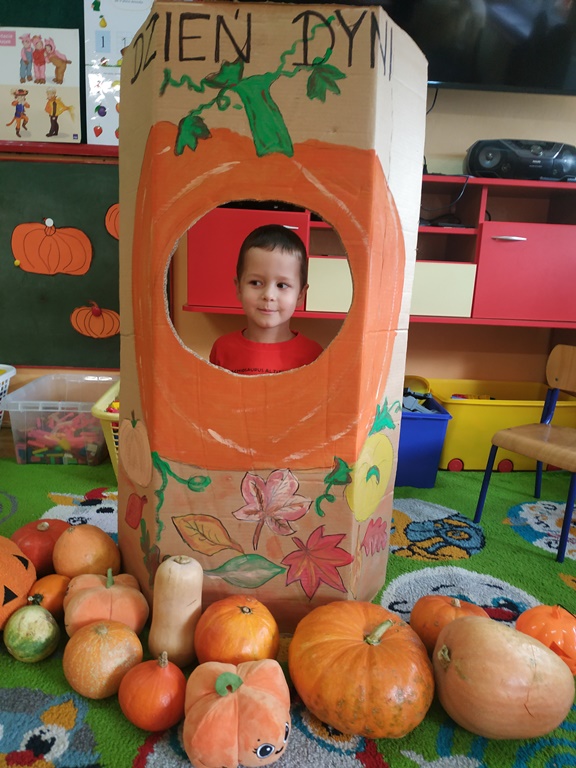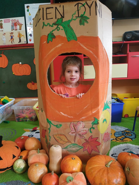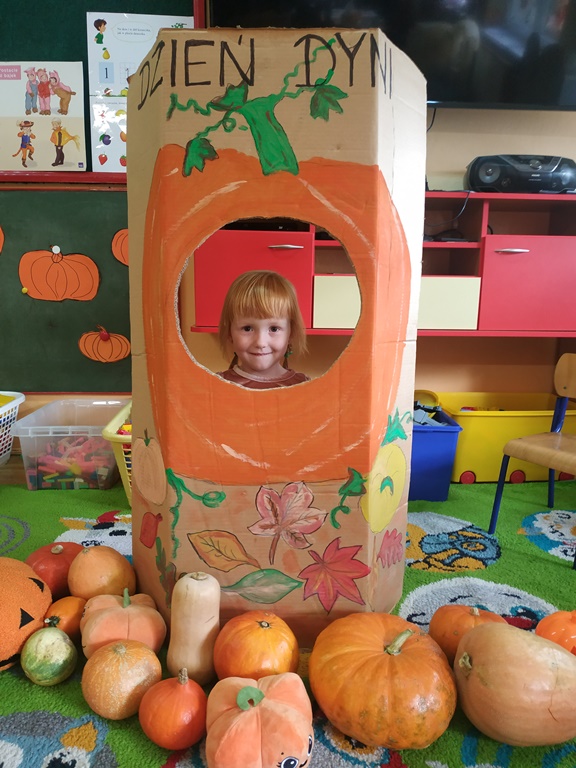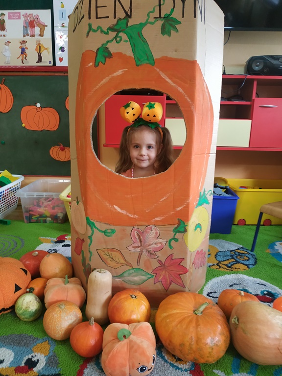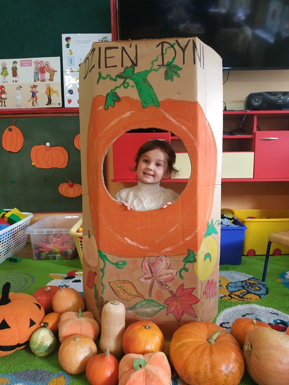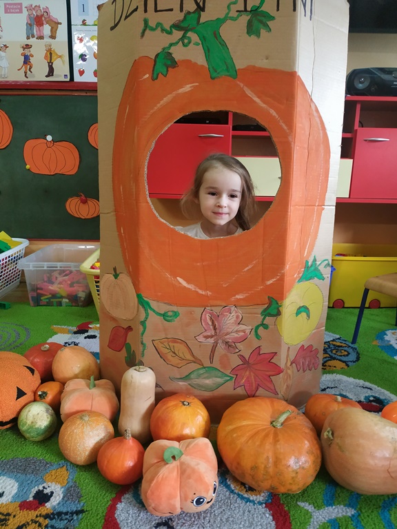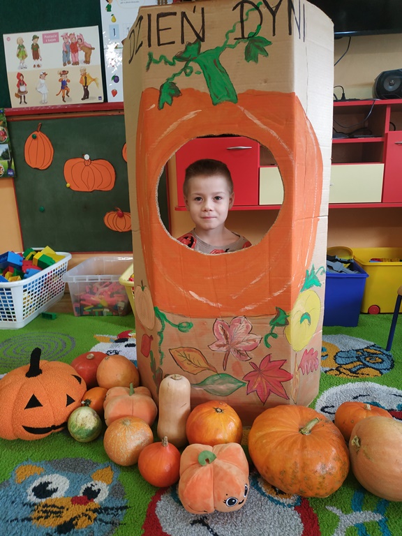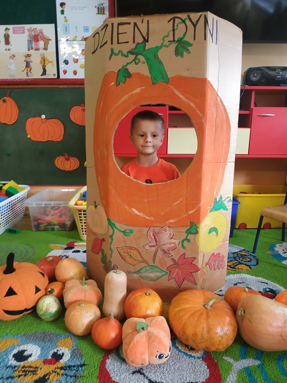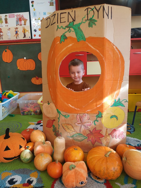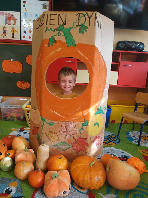 W środę- 29 października, w sali 4-5 latków, Przedszkola w Nowej Brzeźnicy, od rana zrobiło się bardzo kolorowo, ,,Motylki” obchodziły bowiem swoje,,Święto Dyni”. Wszystkie aktywności tego dnia związane były z tym ciekawym owoco-warzywem, który ma kształt i kolor wprost wymarzony do zabawy. Przedszkolaki ubrane w kolory jesieni, chętnie pozowały w dyniowej fotobudce, w trakcie zabaw muzycznych, ruchowych i plastycznych, wielozmysłowo poznawały dynie, ich właściwości, sposoby wykorzystania. Dynia była też inspiracją do pracy plastycznej, ozdabiania jej sylwet w/g własnych pomysłów. Ten dzień, który można śmiało nazwać ,,współczesnym świętem jesieni”, przyniósł dzieciom wiele zabawy i niezapomnianych wrażeń!
