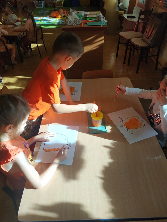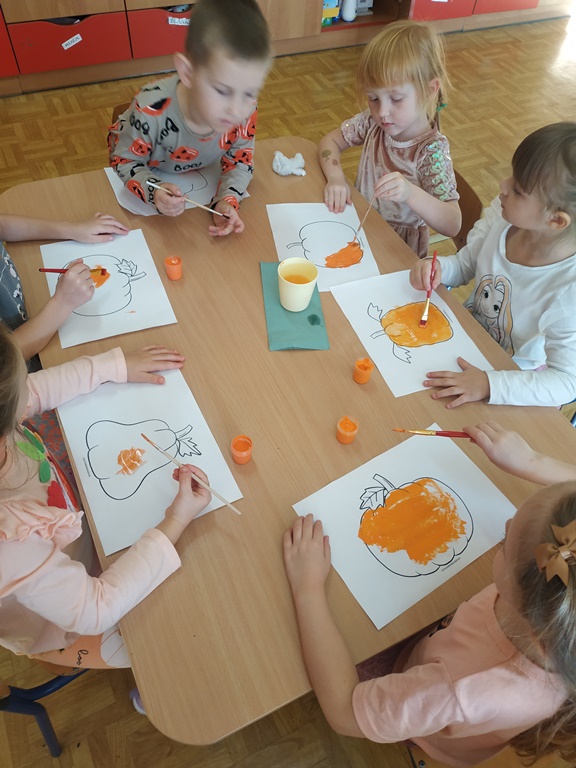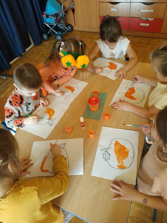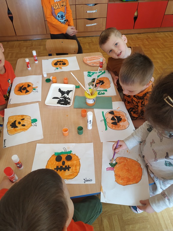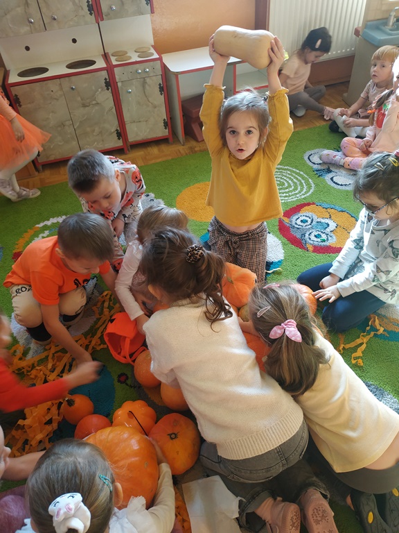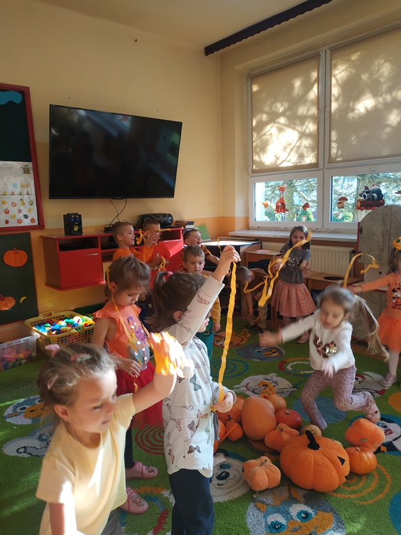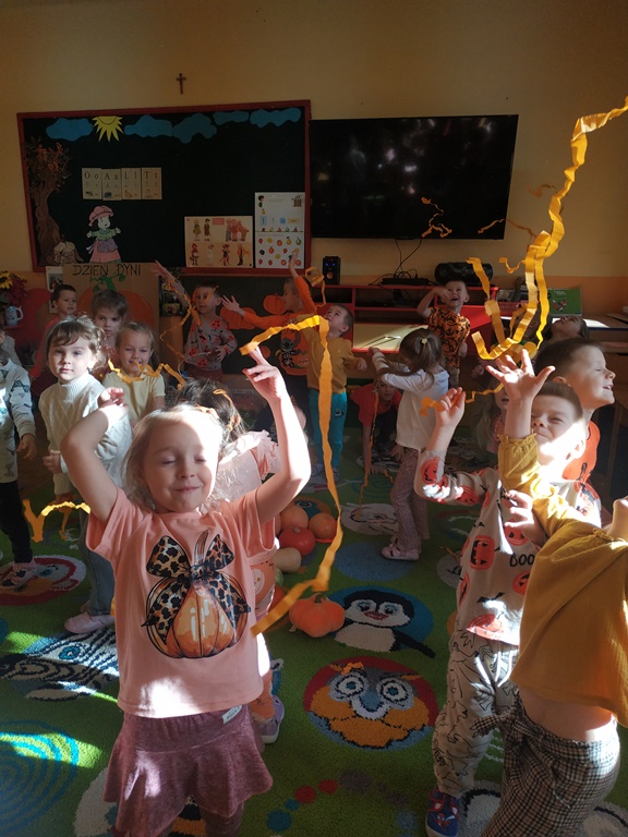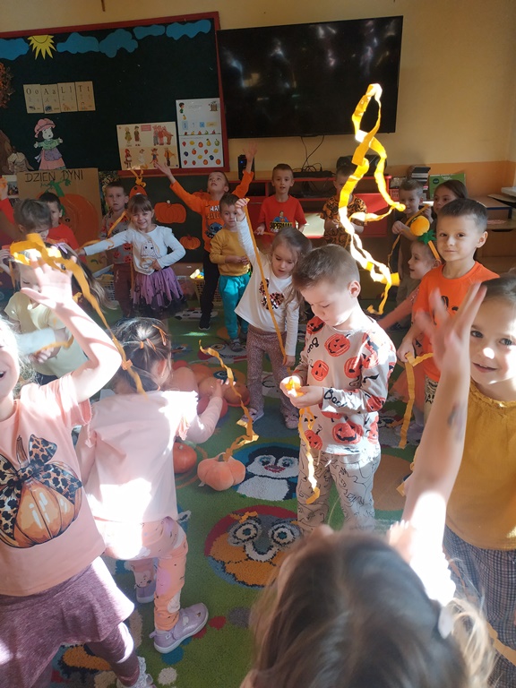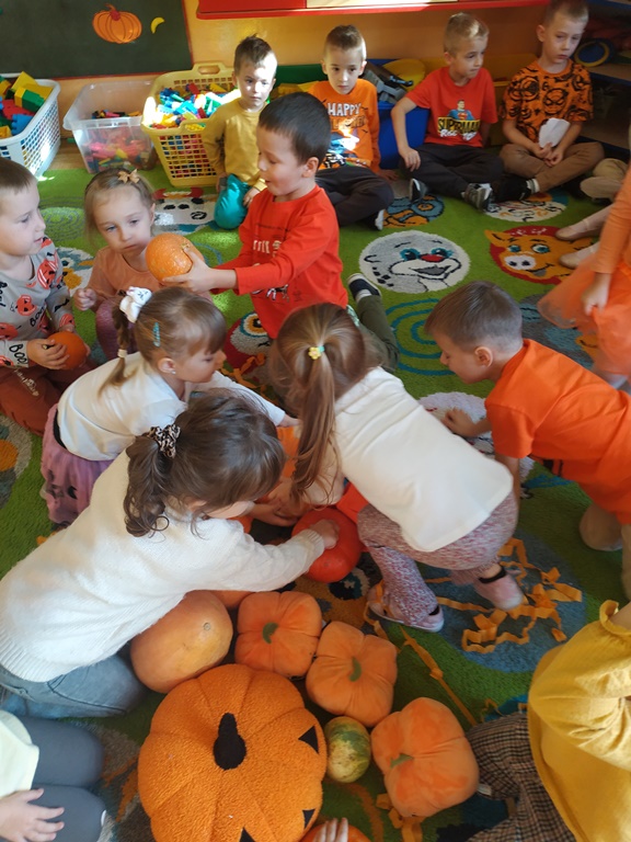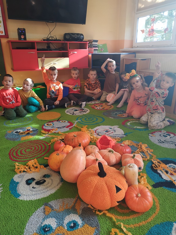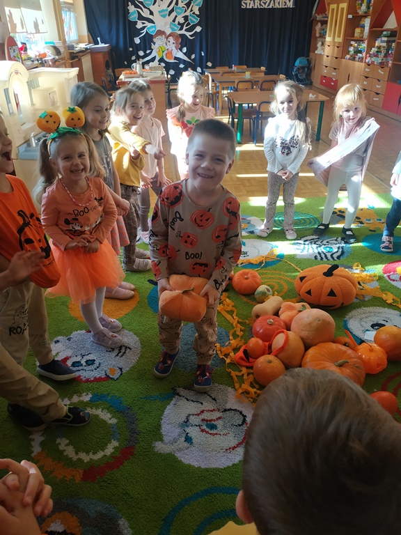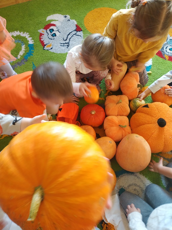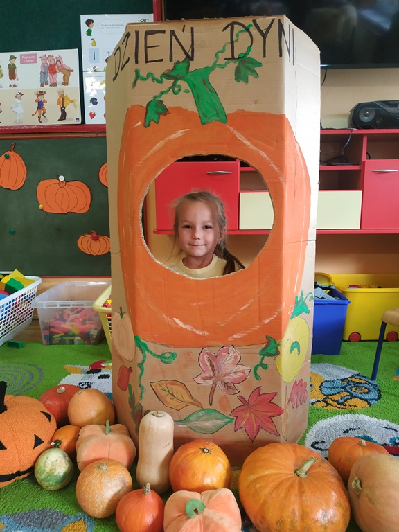 W środę- 29 października, w sali 4-5 latków, Przedszkola w Nowej Brzeźnicy, od rana zrobiło się bardzo kolorowo, ,,Motylki” obchodziły bowiem swoje,,Święto Dyni”. Wszystkie aktywności tego dnia związane były z tym ciekawym owoco-warzywem, który ma kształt i kolor wprost wymarzony do zabawy. Przedszkolaki ubrane w kolory jesieni, chętnie pozowały w dyniowej fotobudce, w trakcie zabaw muzycznych, ruchowych i plastycznych, wielozmysłowo poznawały dynie, ich właściwości, sposoby wykorzystania. Dynia była też inspiracją do pracy plastycznej, ozdabiania jej sylwet w/g własnych pomysłów. Ten dzień, który można śmiało nazwać ,,współczesnym świętem jesieni”, przyniósł dzieciom wiele zabawy i niezapomnianych wrażeń!