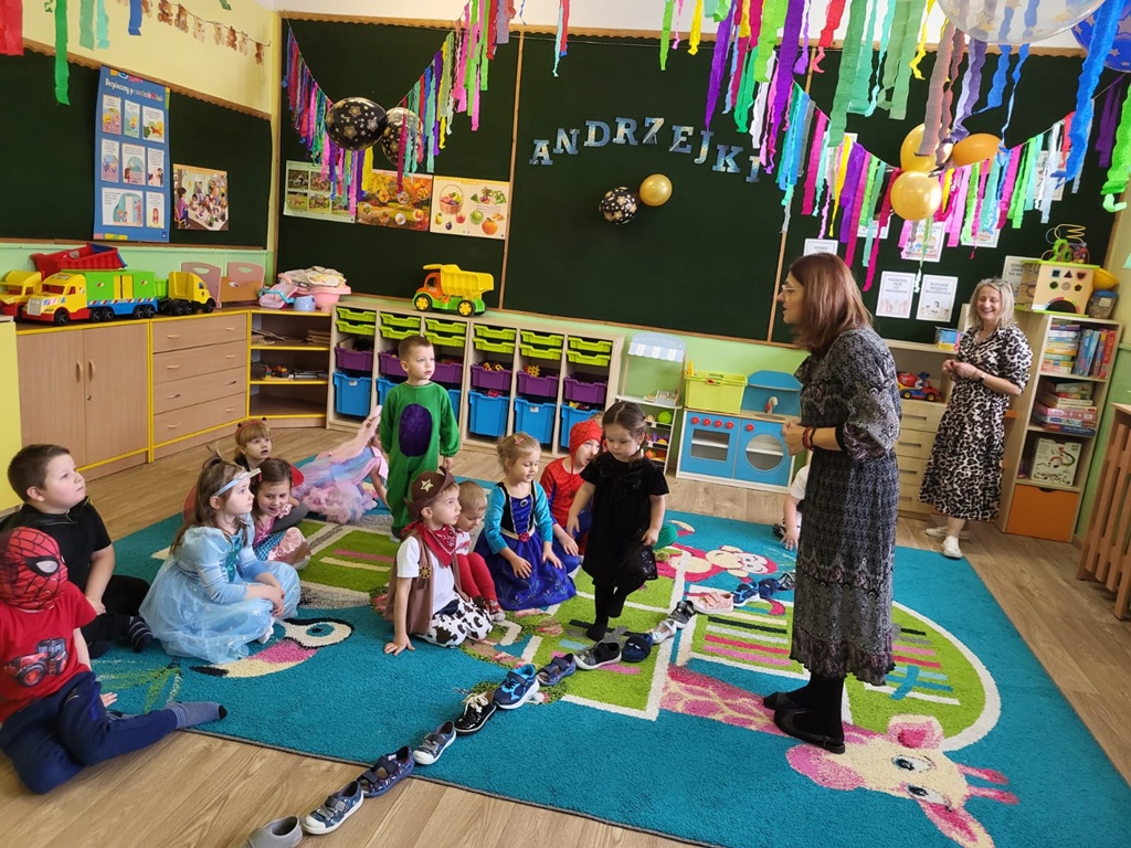 W piątek w naszym przedszkolu odbyły się „Andrzejki” – dzieci były ślicznie poprzebierane, było mnóstwo śmiechu i zabawy. Nie obyło się bez wróżb, lania wosku oraz układania butów. Po zabawach ruchowych i wróżbach odbył się poczęstunek i sesja zdjęciowa.